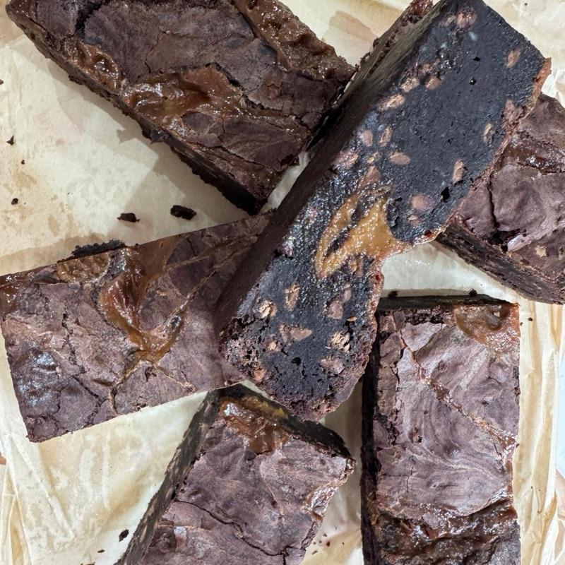 A rich, fudgy gluten-free brownie swirled with gooey salted caramel and packed with chocolate chips. Made with real unsalted butter (never baking spreads or margarines) for an authentic, indulgent flavour that’s perfect for coeliacs and gluten-free chocolate lovers alike.